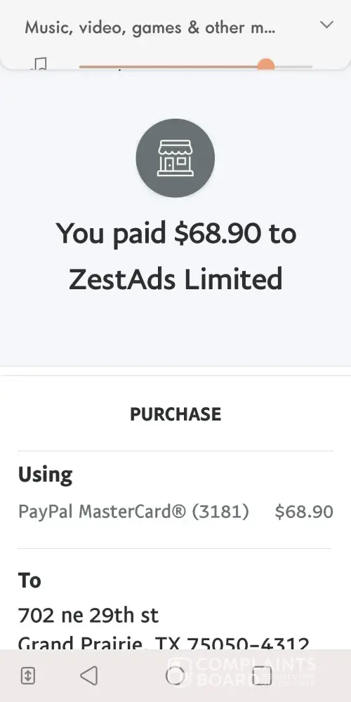 My PayPal account shows a charge of $33.40 on 3/16/2020. I did not order this product nor did I ever receive it. I disputed with PayPal but they closed my case stating it was not an authorized charge. I then checked the shipping/ tracking information and could not locate or track the shipment. I tried to contact ZestAds but they have a fraudulent customer service number which contacts a company in Virginia Beach, VA. Apparently this company is a scam company and appears that PayPal is "in bed with them" to rip off and illegally charge customers. My shipping number is LY030434677N by 17/track.net/en#nums=LY030434677N. My Transaction ID on PayPal is: 69511547GS823194R. Sally Eickhorst, Cape Coral, FL, phone: 815/262-0557. Thank you.