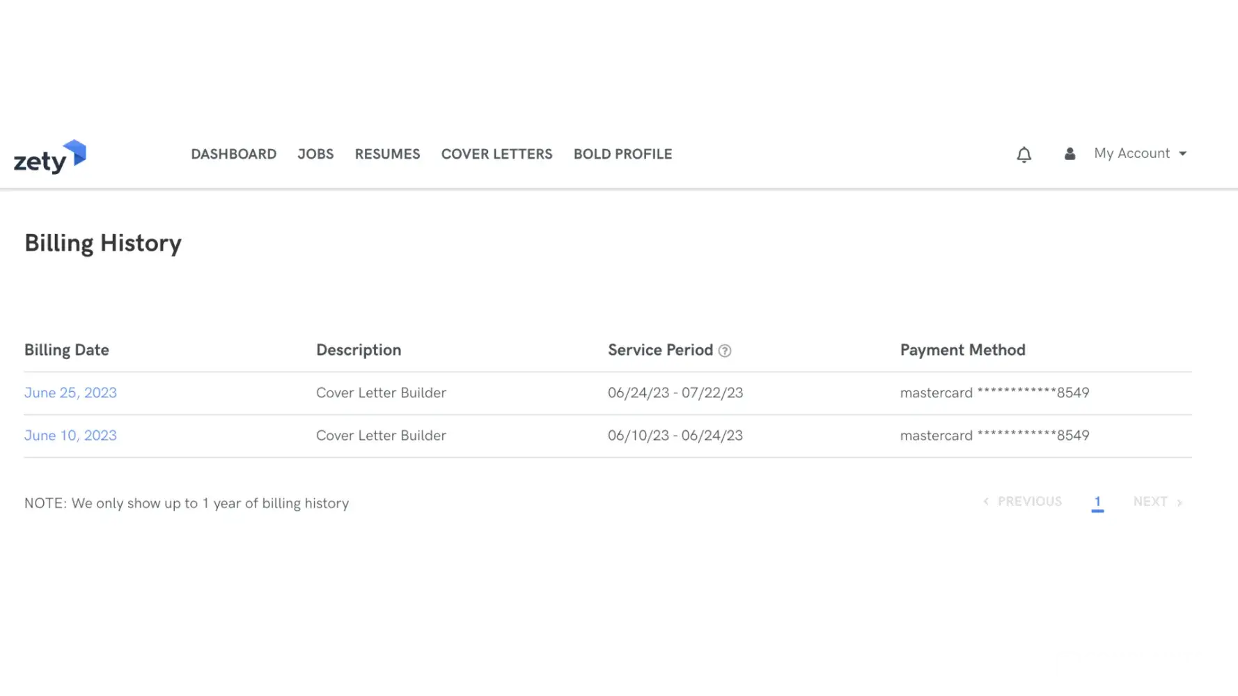 I gave Zety a shot with their 14 day trial, but I gotta say, the sneaky charges were a real downside. I woke up to see a charge on my card and had no idea what it was for. It wasn't until I dug through my account that I found out it was from Zety. And to make matters worse, they didn't even bother sending me a receipt in my email. Not cool, Zety.
