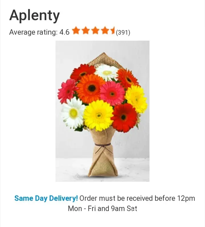 So first thing is I paid extra for delivery on a Saturday, the flowers were delivered on a Friday.