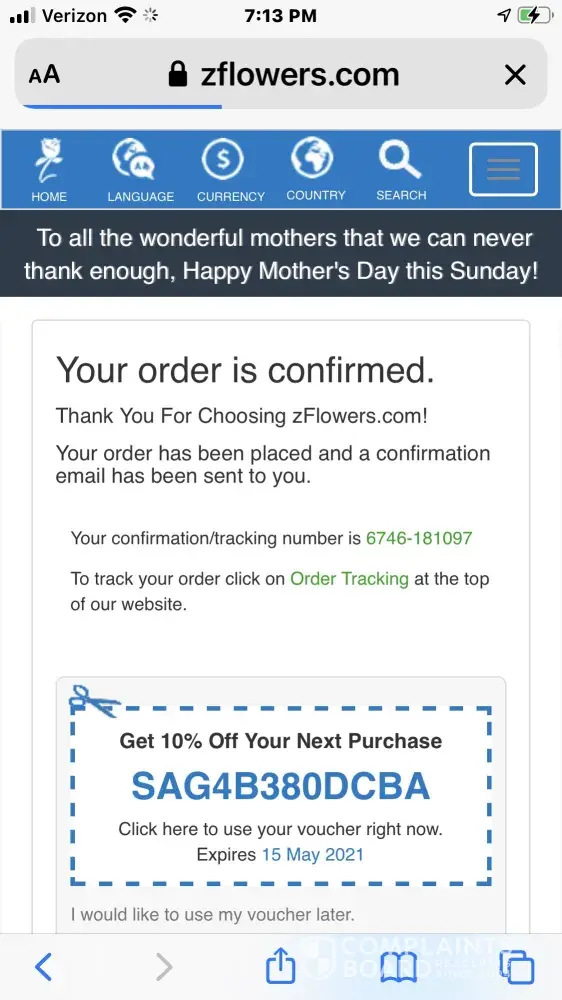 I purchased flowers for Mother’s Day and they turned up the da after. They are expensive and a rip off . Don’t waiste your money on zflowers.