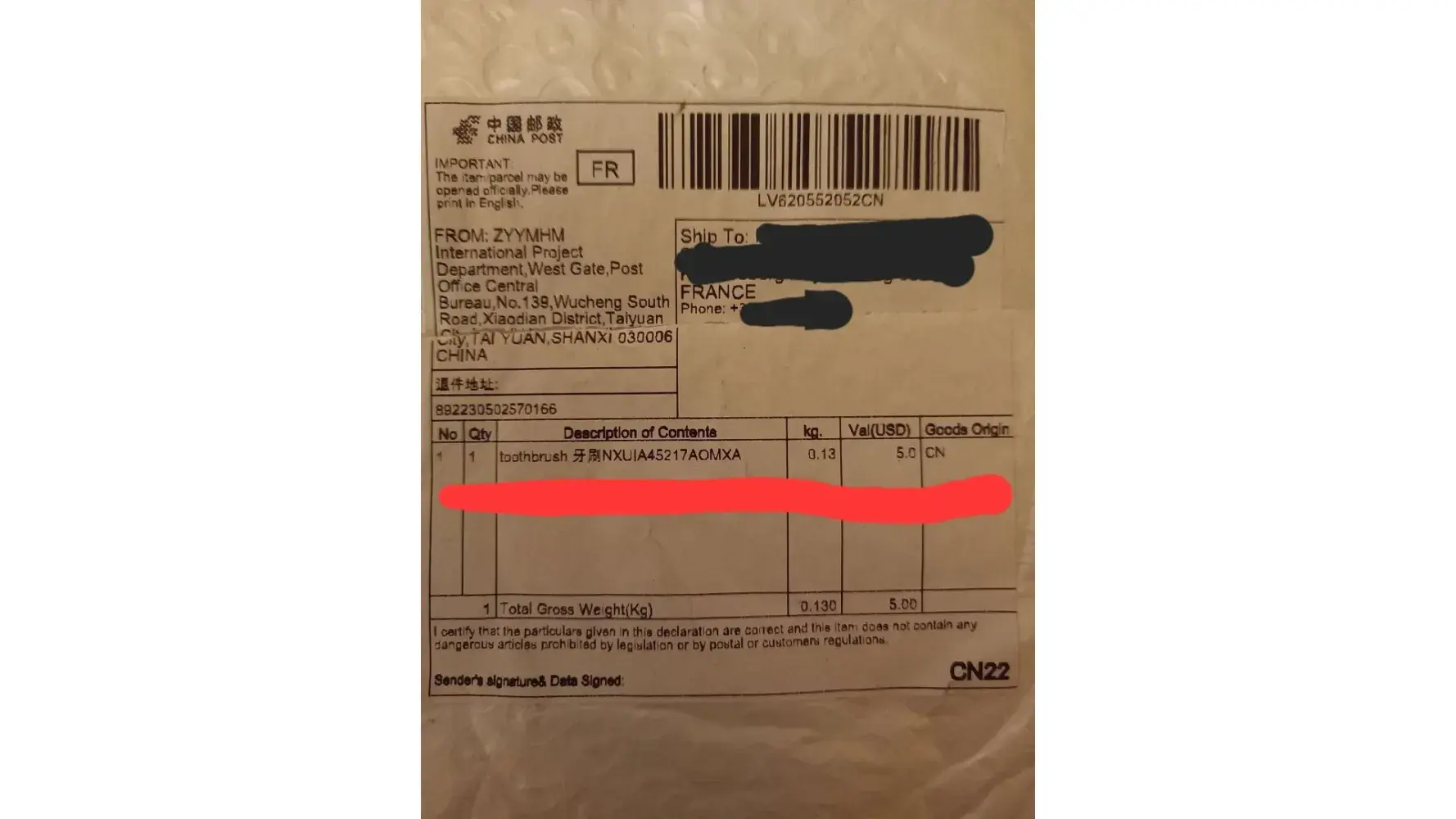 En plus j'ai payé 10€ de frais à la poste ...
