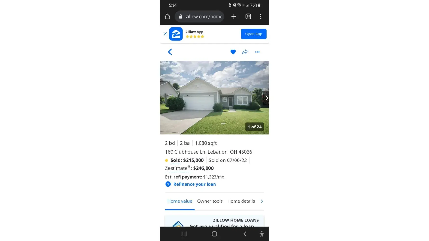 My address is 160 clubhouse lane in Lebanon Ohio. It is priced at 249 per square foot and was built-in 2012