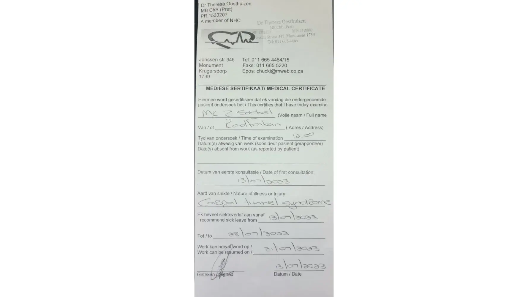We were told to cancel the contract as soon as we get back in Pretoria.