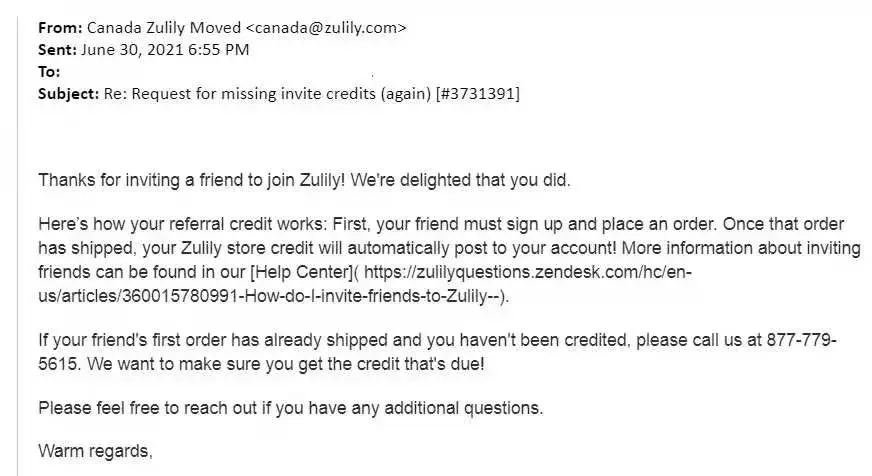 I've shopping on Zulily Canada for quite some time. Even though a few things I bought were either very low quality or overpriced, I was overall happy with Zulily, so I recommended Zulily to people by sharing invite and event links. Zulily promised to automatically add invite credits for qualified referrals. However, the invite credits never came automatically, and it was a hassle to get back the missing credits. And I was only successful in retrieving part of the credits - Zulily Canada stills owes me invite credits. Therefore, I think Zulily Canada's referral program is a scam.