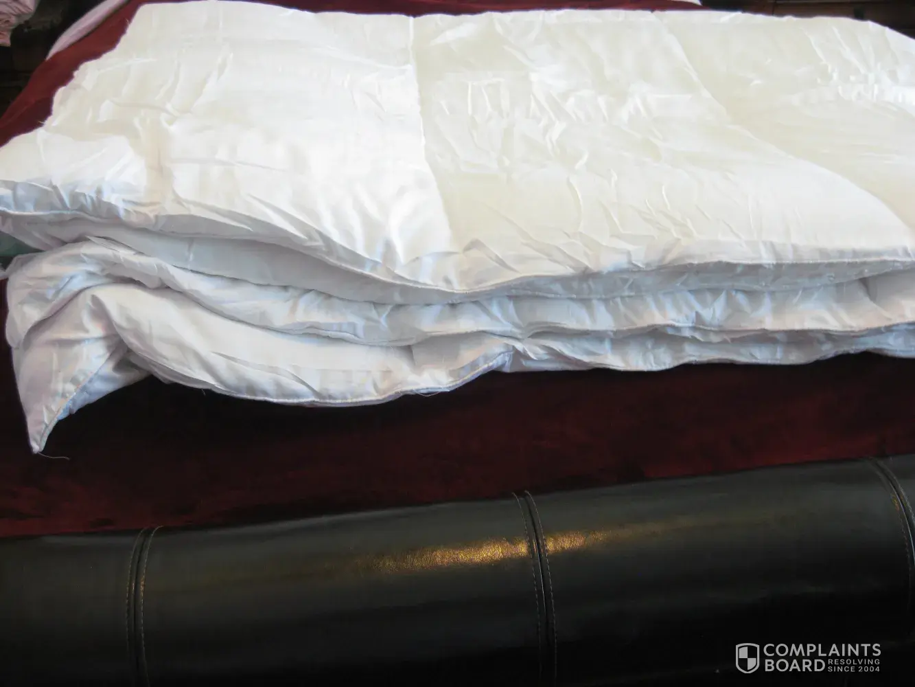 As I unfolded the comforter on my bed I saw several snags and tears on it so I photographed the damages of the defective product for you to see.