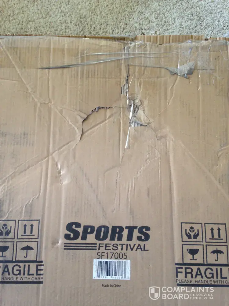 This Product was delivered by UPS Friday 5/12/2017. The packaging had damage and when we opened it the one board also had damage. We would like this product replaced. We contacted UPS and they also will file a complaint. We didn't talk to the UPS driver he just dropped the package off. I guess the damage was very visible on the packaging that he should have contacted us to see if the product inside was also damaged.