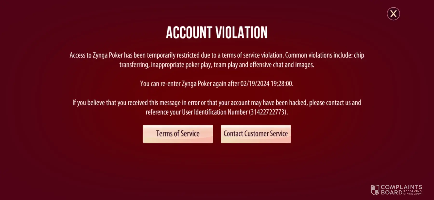 I have play zynga Poker before and deleted when I had enough playing it. It has been close to a year, maybe 10+ month since I had the app on my phone. I just downloaded the app a few days ago, but I haven't started playing any games yet. When I opened the app to play, I saw the message saying my account is suspended. I emailed support to ask what happened. They stated that I violated the terms of service. I emailed back asking for specific because I just downloaded the game and haven't done anything yet. I even explained that due to their data breach, my information has been exposed and it has to be that my account was hacked. They replied saying that I did chips transfer to a suspicious player. Again, I just downloaded the game and haven't done anything yet and I also don't know how to transfer chips and I don't even have friends in the game because I'm not interested in that stuff in the app. I just like to play for fun. They finally replied saying that they aren't going to reply anymore because they explained as much as they could and there is nothing they will do and my account will remain suspended. To be accused when you haven't done anything is unjustifiable especially when I didn't even play the game yet. I truly believe that if I did what they said I agree with what their system flagged, but I wouldn't come here and do this when I know I didn't do anything and it isn't fair neither just.