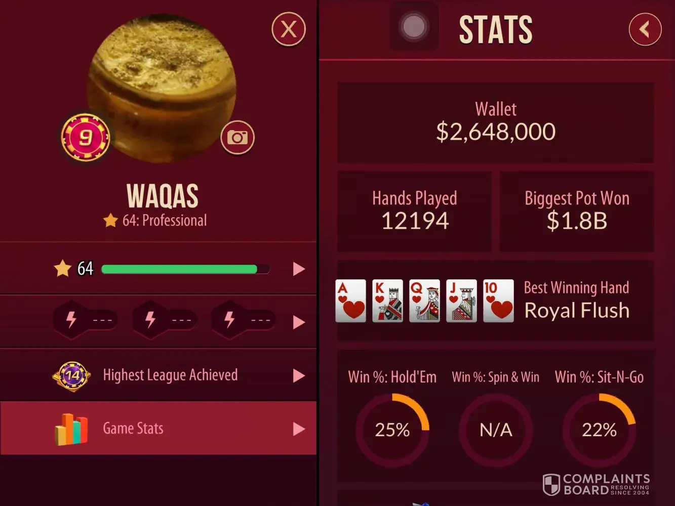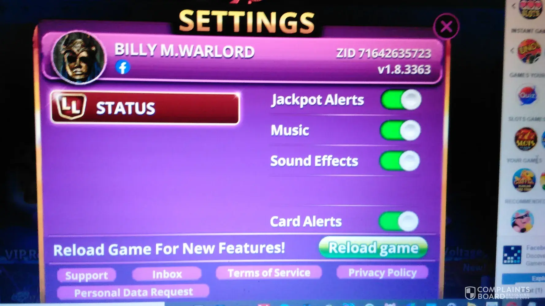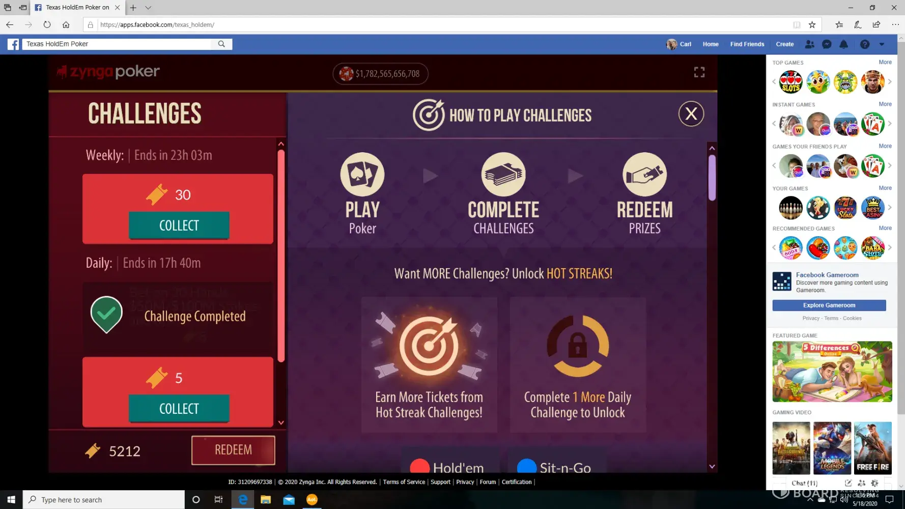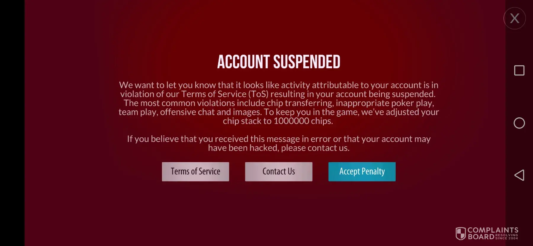There is a section balled challenges, and it claims once you complete the challenge you will receive, in my case, 6 trillion and a second challenge, 262 billion chips. I have screenshots before and after completion. I never received those chips and wrote their support. They gave some off the wall answer that did NOT explain my concern. I then wrote a letter with attachments to their chief legal officer. No answer. I filed a complaint to their BBB. The answer I got this morning said they resolved the case. A total lie. I have told the BBB that was an unacceptable answer and included my attachments.