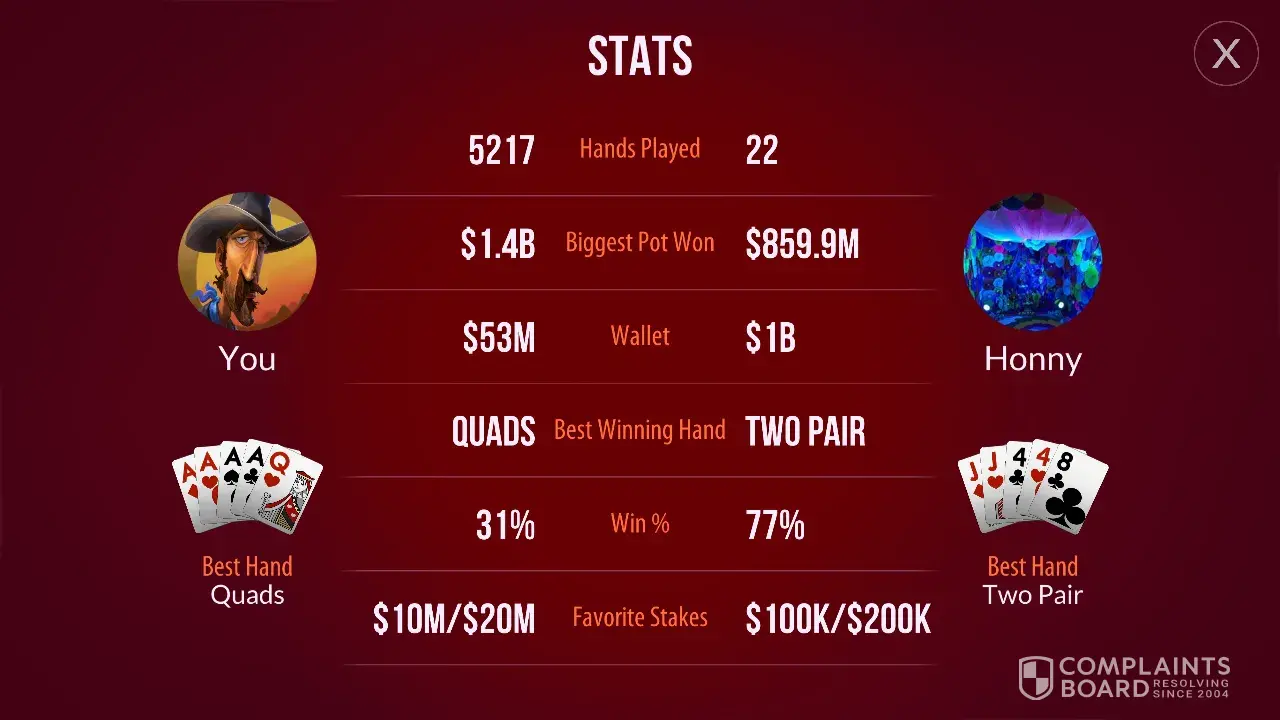 I can understand that your system can mark me as irregular playing activity as its my style of poker but i am not a cheater, nor i use multiple account, nor i transfer any chips. I buy-in 200m on 20m blinds and usually stands up with billions. Please explain to me if i am playing against any donkey who is calling everything while chasing and then he folds, whats my fault in it. This happened twice while i was playing yesterday. One time i stood up with 4B and second time i stood up with 6B, you can verify that.