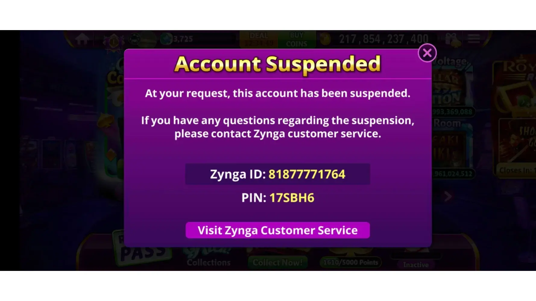 I wanted to suspend my payments option cause I spent sooo much money on this site but I hit suspend acct instead now I can't get my game back till march 2024... I have reached out to them to no avail even emailed the ceo.. And bbb. I just want my game back don't understand why I can't play theu got rich over vip customers like myself buying coins now since I don't want to they won't let me play so bizzare