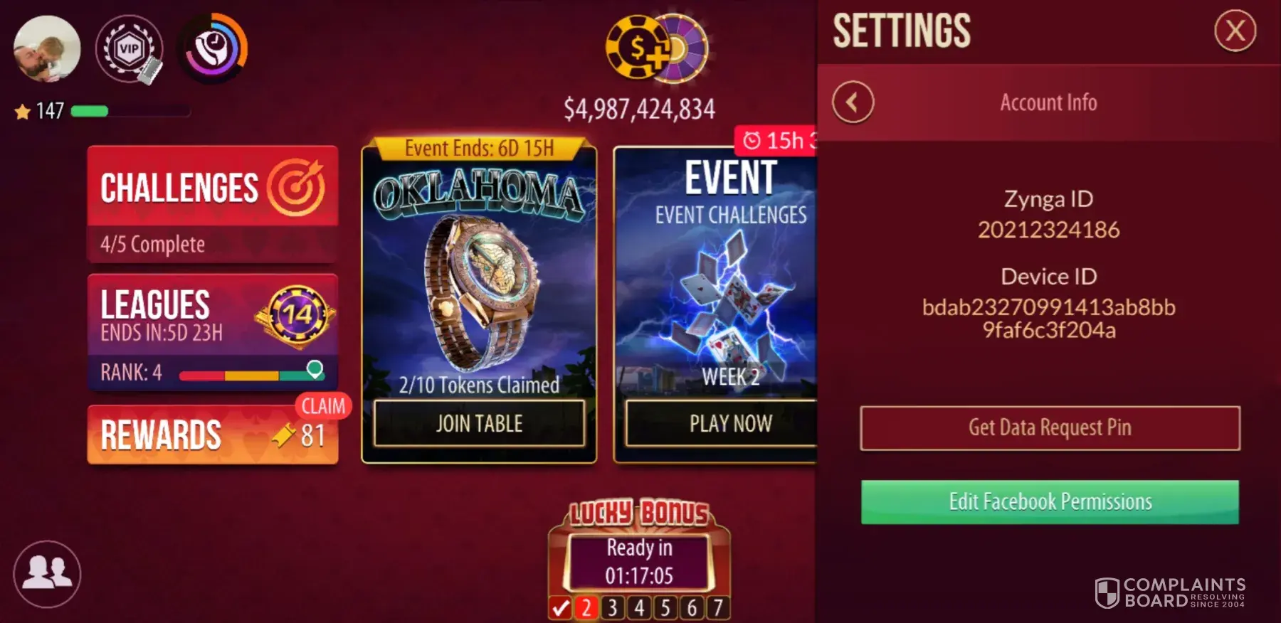 Zynga is not right. There is no way I should lose 90% of the time being ahead in the hand on the turn card. I have a name for this getting Zynga. I complained about this early survey until they stopped asking. It appears to me that you have geared this game for the fish that don't know how to play. You need to get this fixed to make it fair. So not just the stupid players will win. I know I will be looking for a new place to spend my time playing.